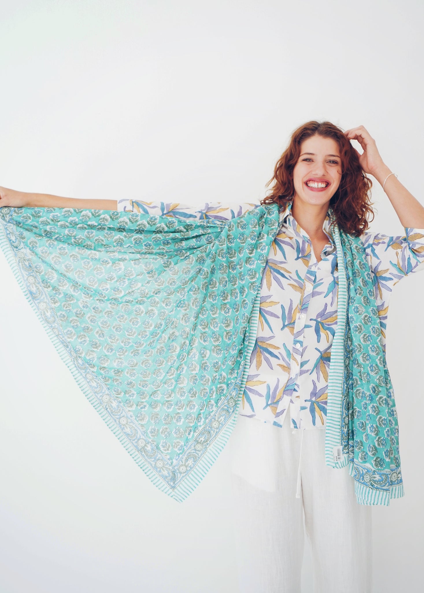 Hand printed, 100% cotton. A sarong, wrap or scarf, this piece has all the versatility, a soft airy feel, and comes in a variety of oh so lovely prints!
