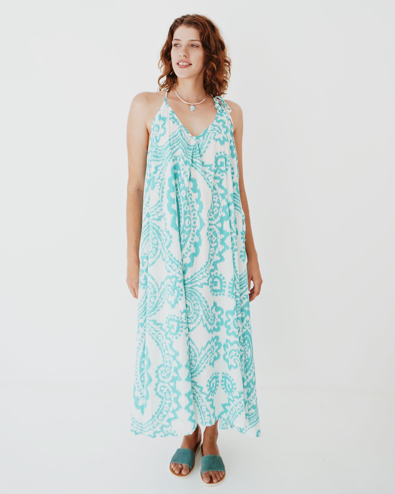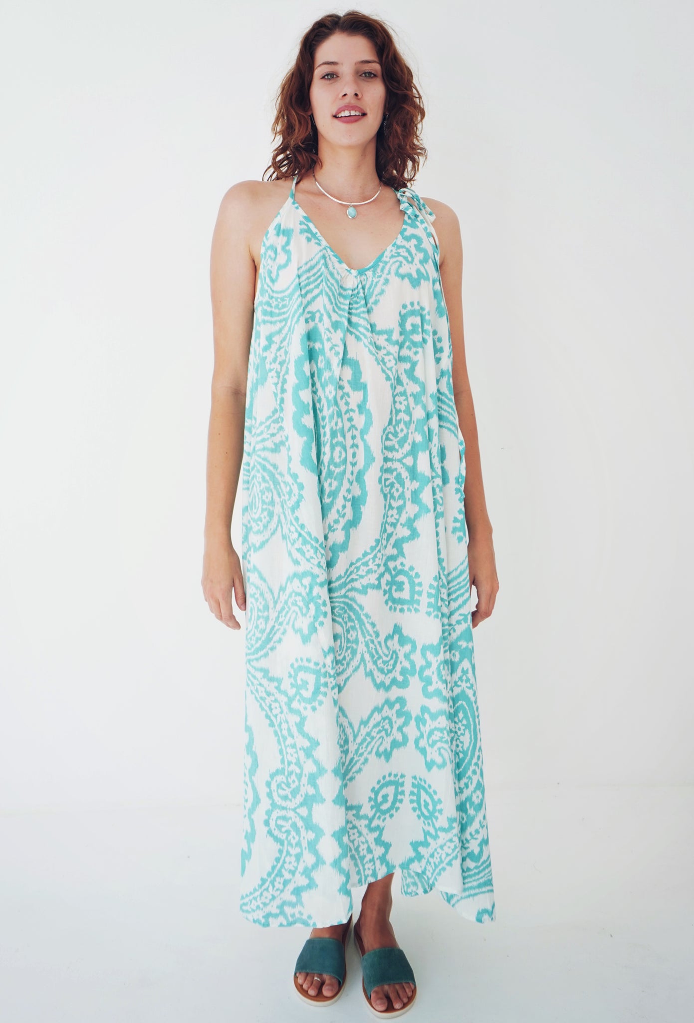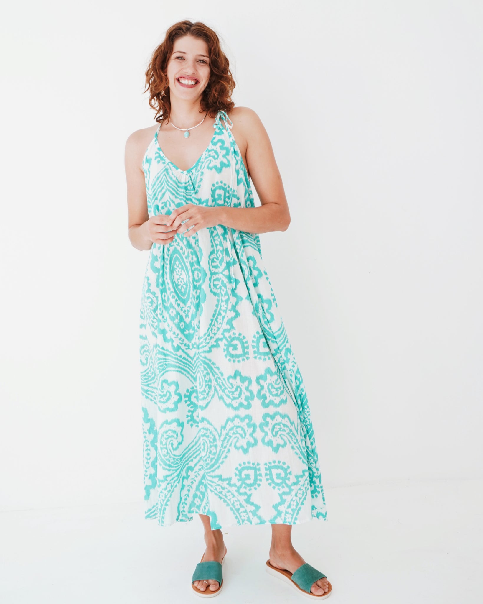 She is like taking the beach with you wherever you go! Featuring a slightly v-shaped neckline and strappy sleeves that are adjustable due to the tie nature of them (adjust sleeve position and neckline - handy!). With a long straight body, and fresh print! She works beautifully for this who have a fuller chest/figure. Simple, but there is something glamorous about her!