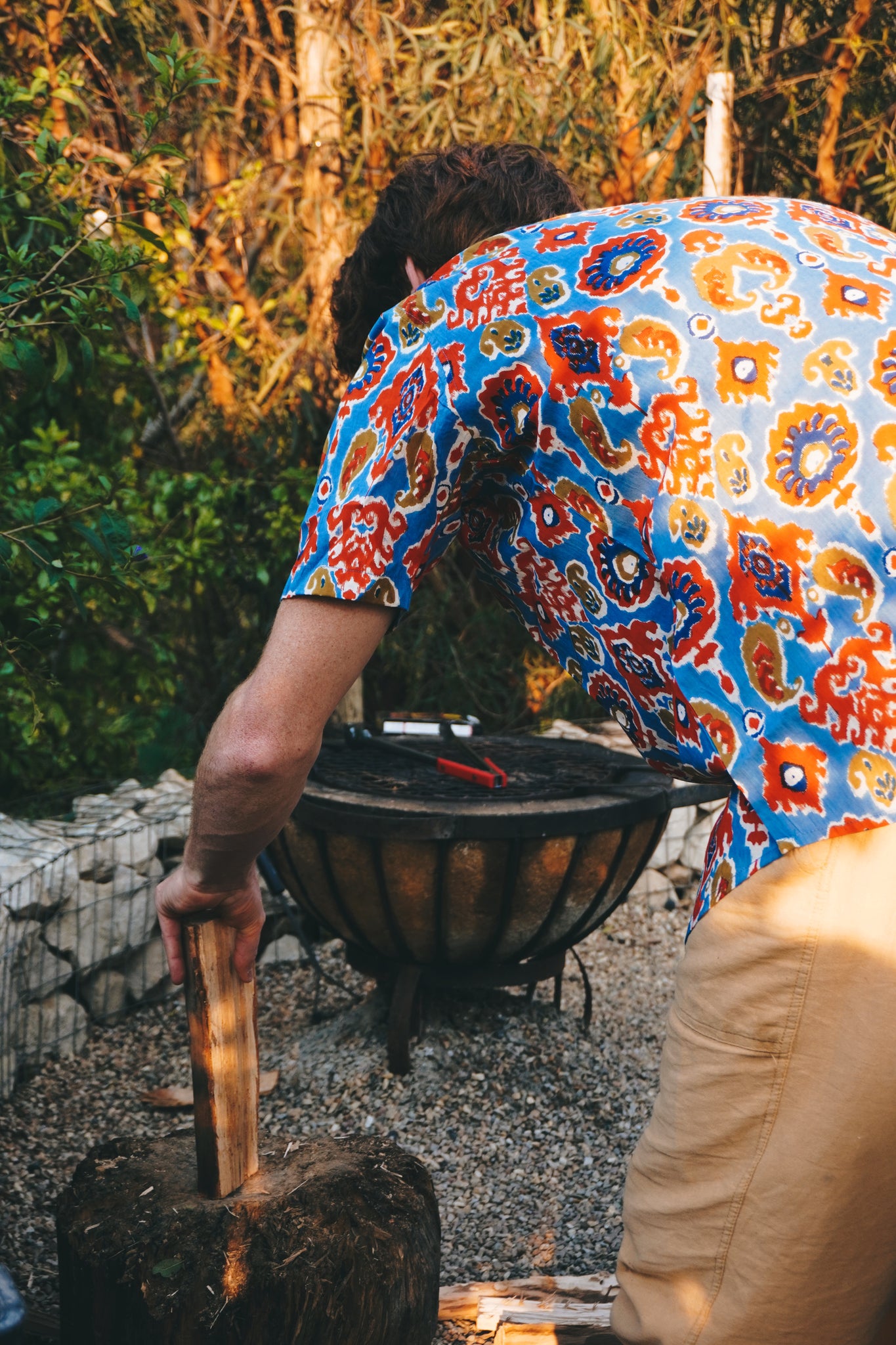 A classic button down shirt with a Chinese collar detail. Easy to dress up or wear casual. 100% cotton and hand printed via the block print method. Buttons all the way down. These prints add something more to your everyday look.