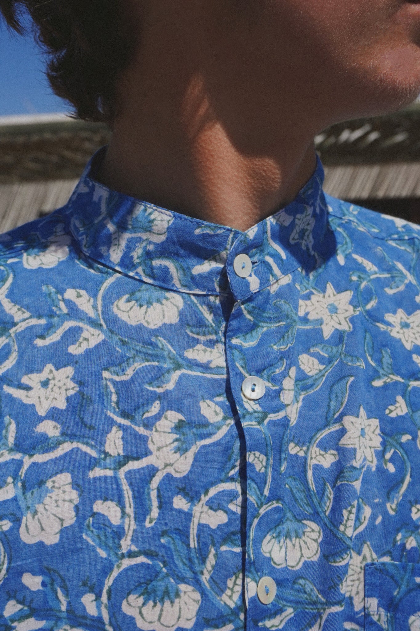 A classic button down shirt with a Chinese collar detail. Easy to dress up or wear casual. 100% cotton and hand printed via the block print method. Buttons all the way down. Easy, laid back style - with unique prints adding something different to your every day looks.