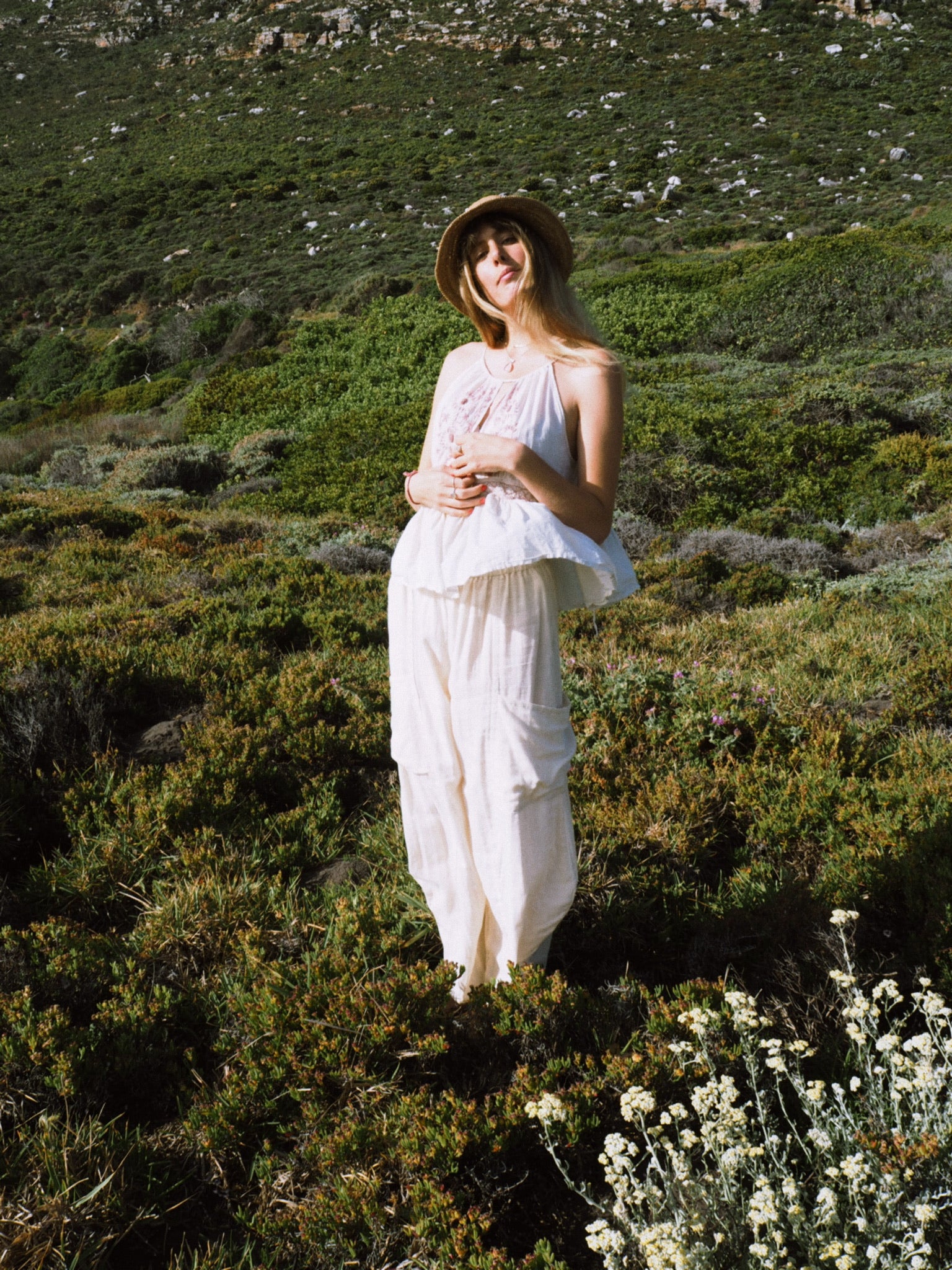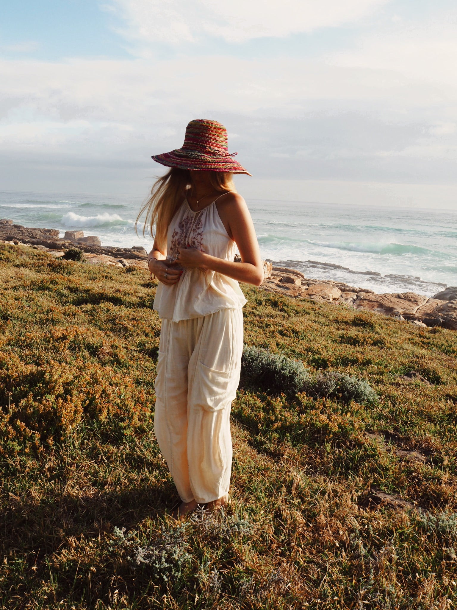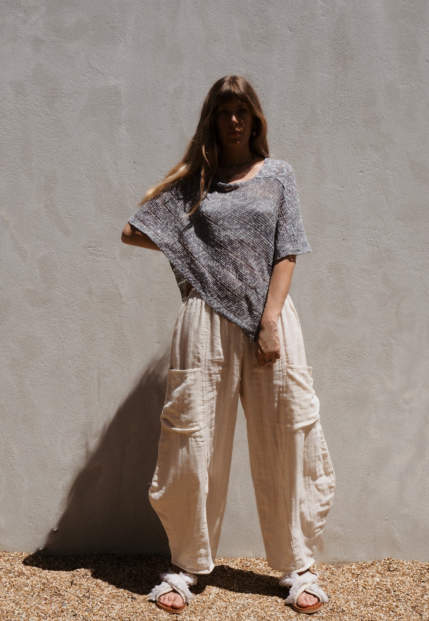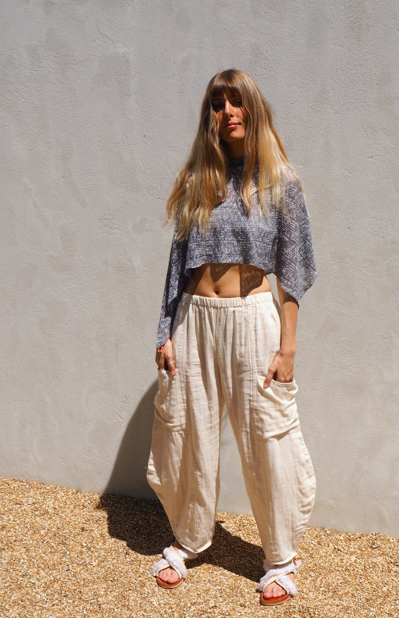 100% loose weave cotton. 100% comfy. Shaped leg, featuring large pockets and an elasticated waist. This pair of pants are an investment, soft textured cotton in a comfortable cut which has an effortless every day look.