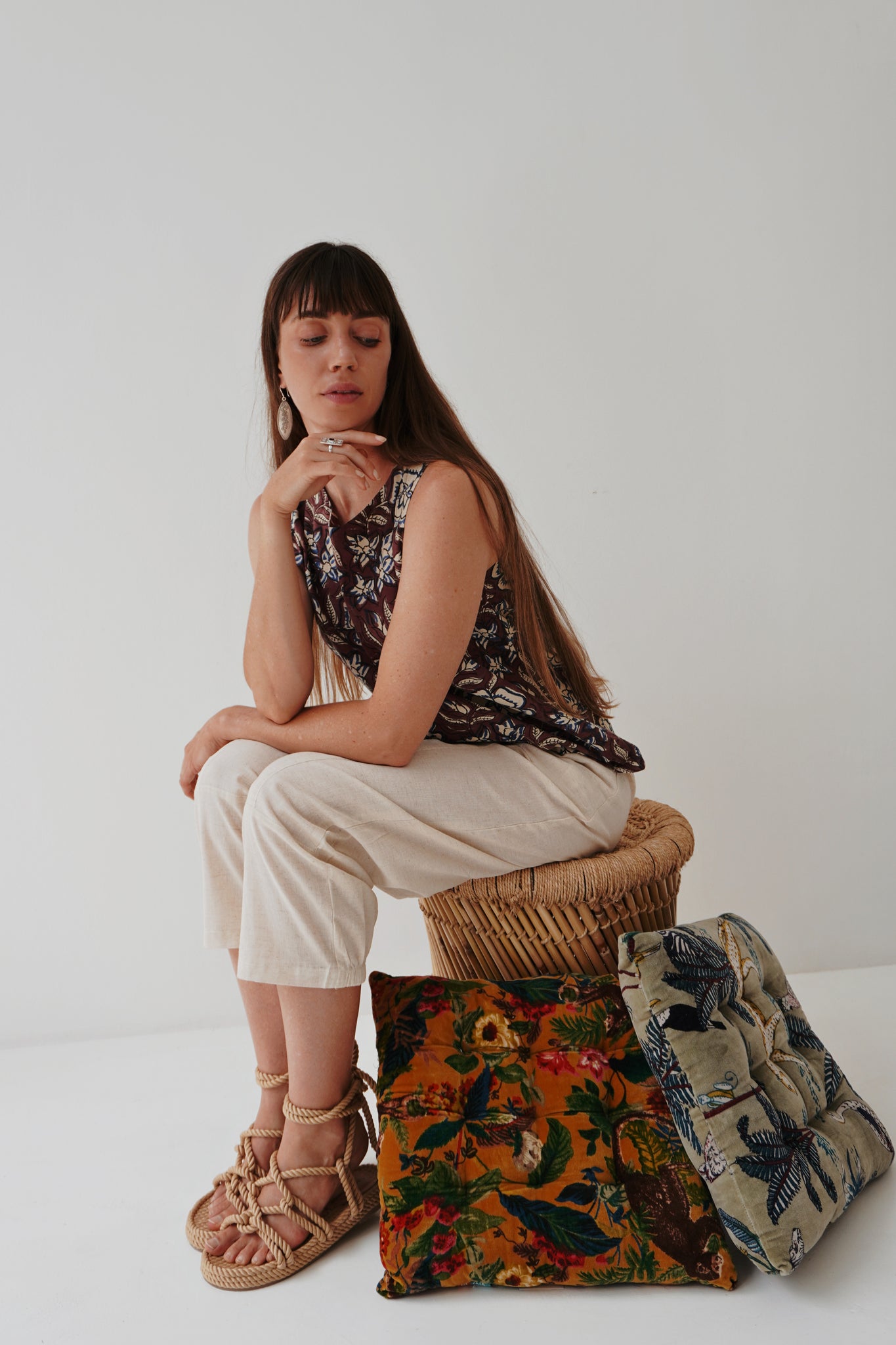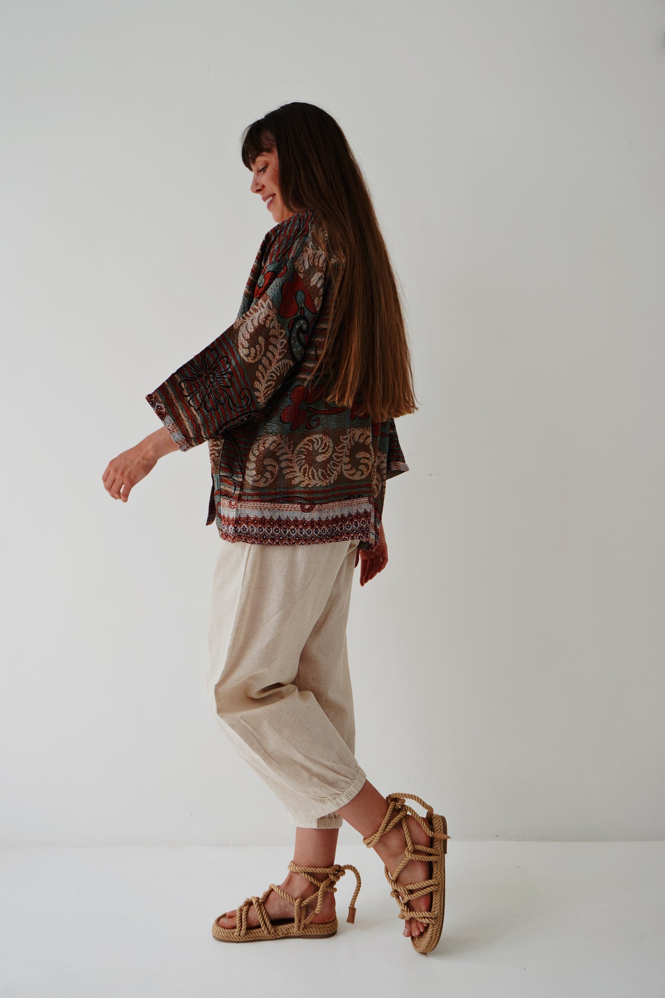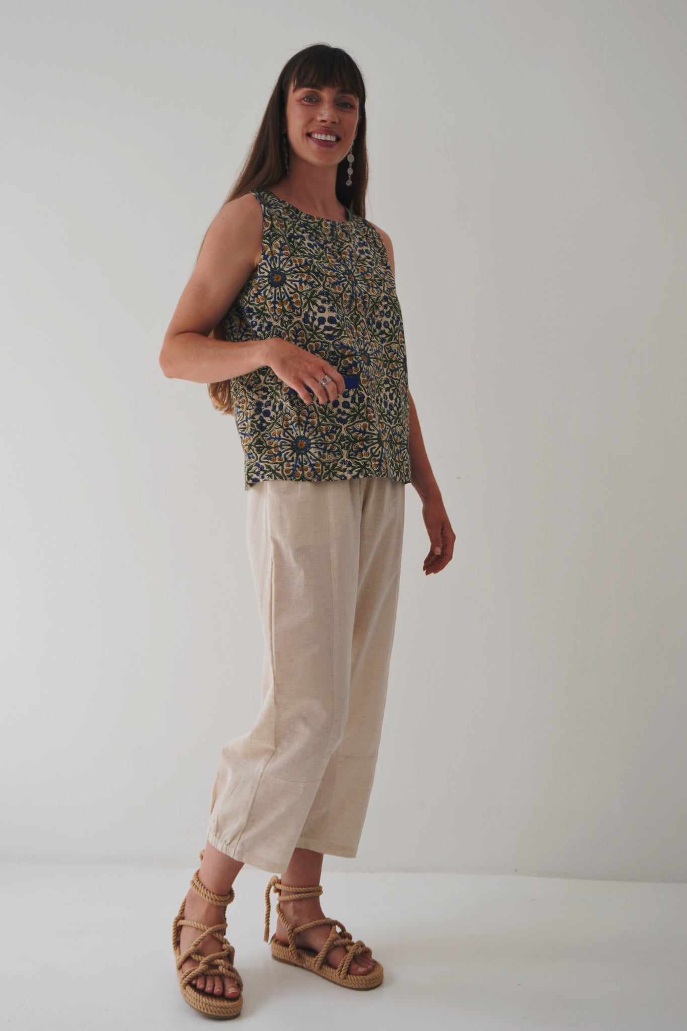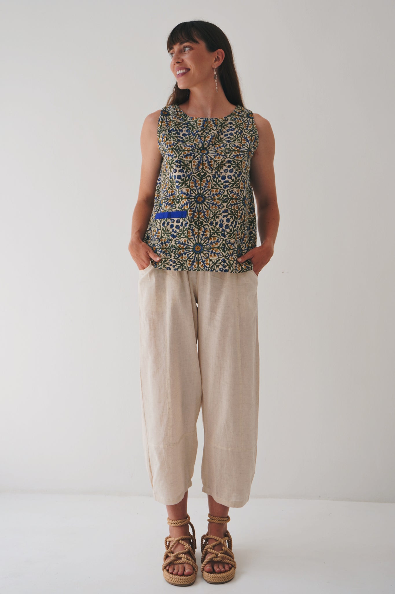A lovely neutral addition, something soft and comfy! Featuring a thick elasticated waist, lovely roomy pockets, and a wide leg that very subtly tapers at the ankle. The ankle cuffs are flat at the front, but with elastic at the back, giving it a slight gather and truly funky cool shape. A slight crop, and subtle seams, provide structure to an otherwise utterly relaxed pair of pants!